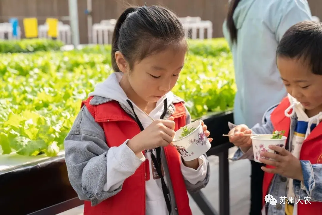 走進生長旺盛的蔬菜區親手采摘,從育苗、移栽、采收都不落下。端詳著剛剛從自己手中的種子變成可以收獲的蔬菜,孩子們明白了家鄉現代農業的真正神奇力量。 品嘗水耕蔬菜,優質上品贊口不絕