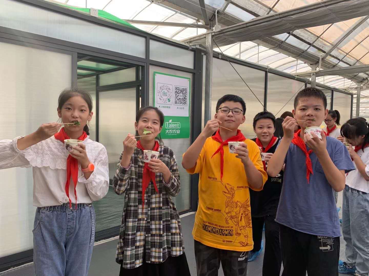 最后,帶領白鹿小學的老師及同學們進入到大農農業水耕種植基地大棚,讓同學們在大棚中親身實踐育苗、移苗、移栽和采收的各個環節,同學們用自己采收的各種蔬菜現場制作了美味營養的蔬菜沙拉并且進行了品嘗。